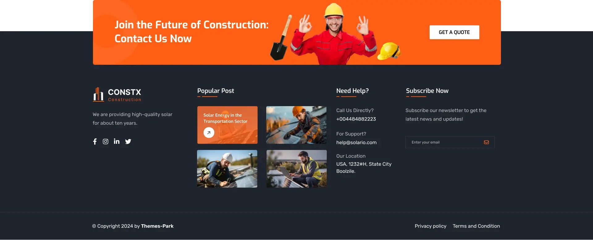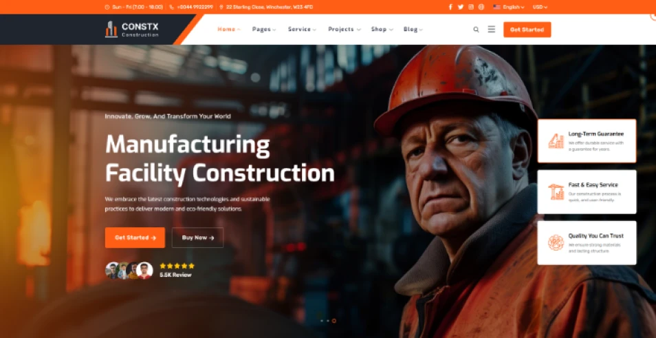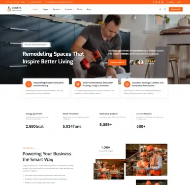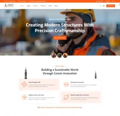 ConstX is a powerful construction and renovation website template packed with essential features and professionally crafted sections to help builders, contractors, architects, and service companies create a modern and high-impact website.