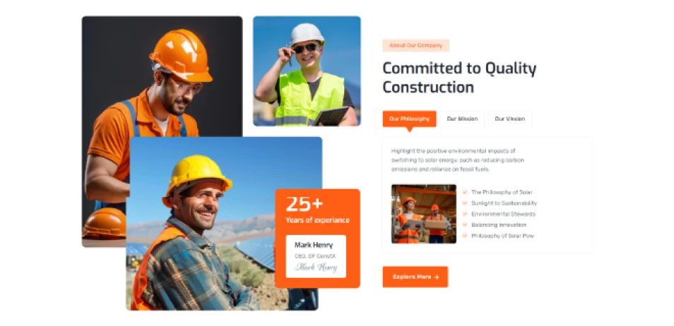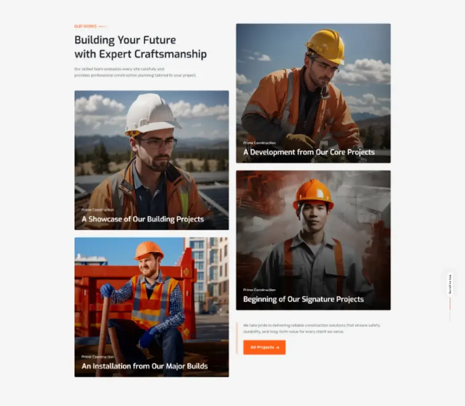 Build your dream construction site with flexible layouts that match your brand identity, project style, and client expectations effortlessly.