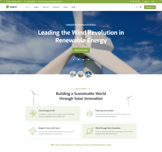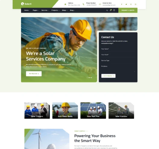 Solarx is a ready-made HTML template for solar and renewable energy businesses. It includes 20+ modern demos, responsive design, and clean code — perfect for agencies or eco startups.