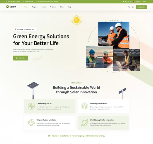 SolarX is the ultimate solar website template packed with unlimited features and all the essential sections you need to create a professional, modern, and engaging solar energy website.