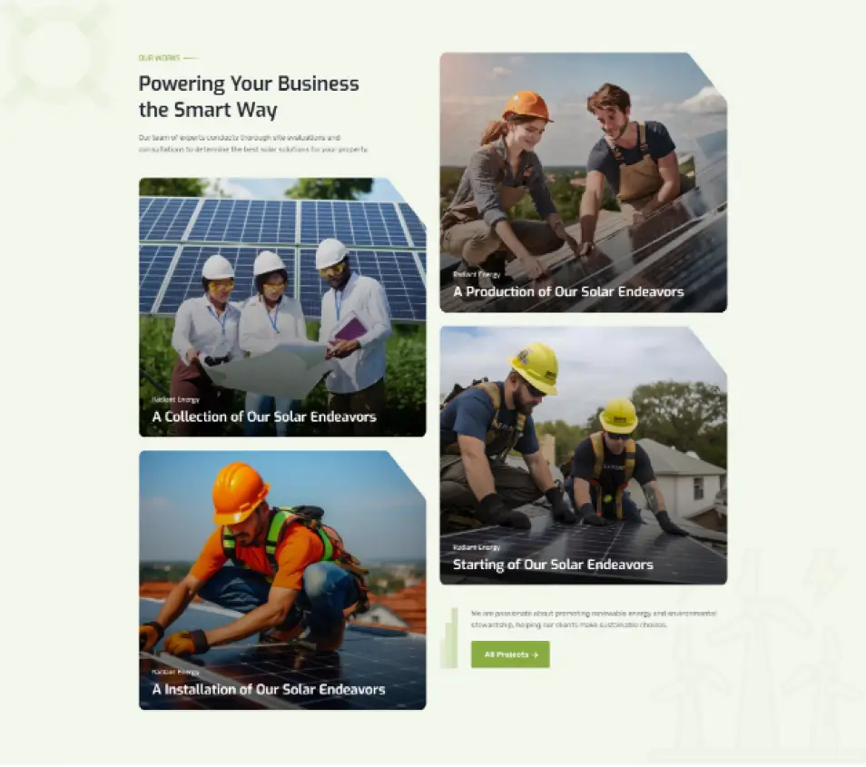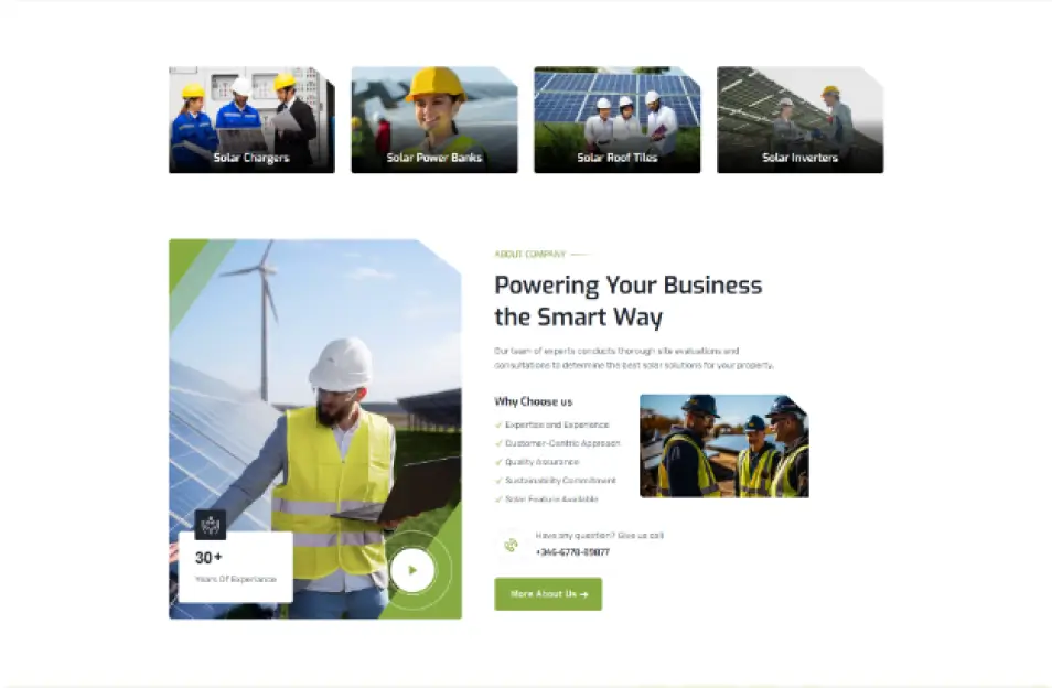 Tailored for solar businesses, energy startups, and green technology brands.Interactive elements, smooth animations, and intuitive navigation.