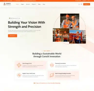 ConstX is a powerful construction and renovation website template packed with essential features and professionally crafted sections to help builders, contractors, architects, and service companies create a modern and high-impact website.