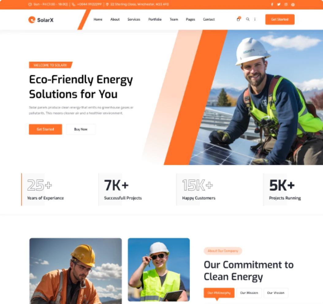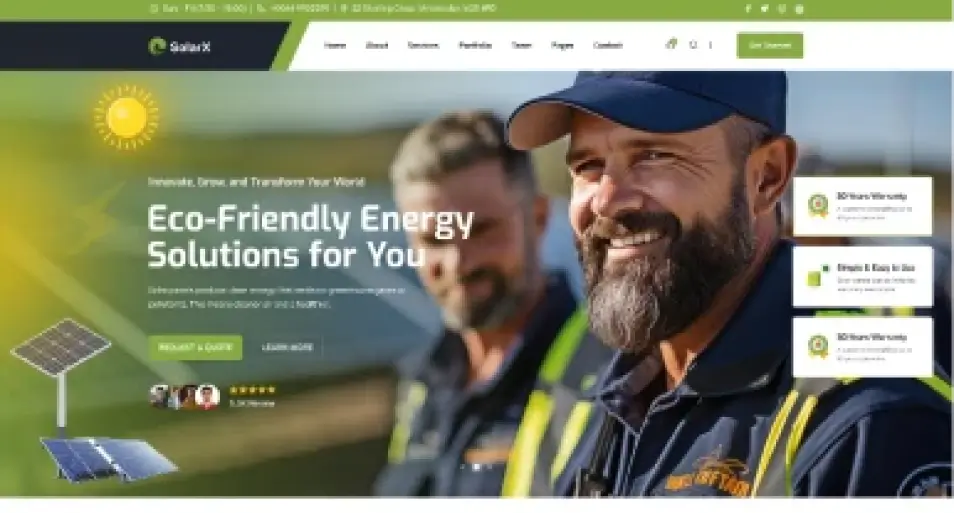Solarx is a ready-made HTML template for solar and renewable energy businesses. It includes 20+ modern demos, responsive design, and clean code — perfect for agencies or eco startups.