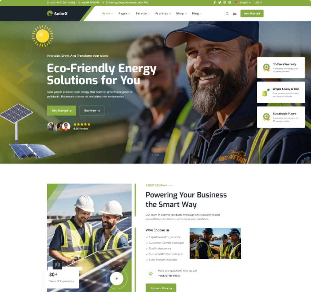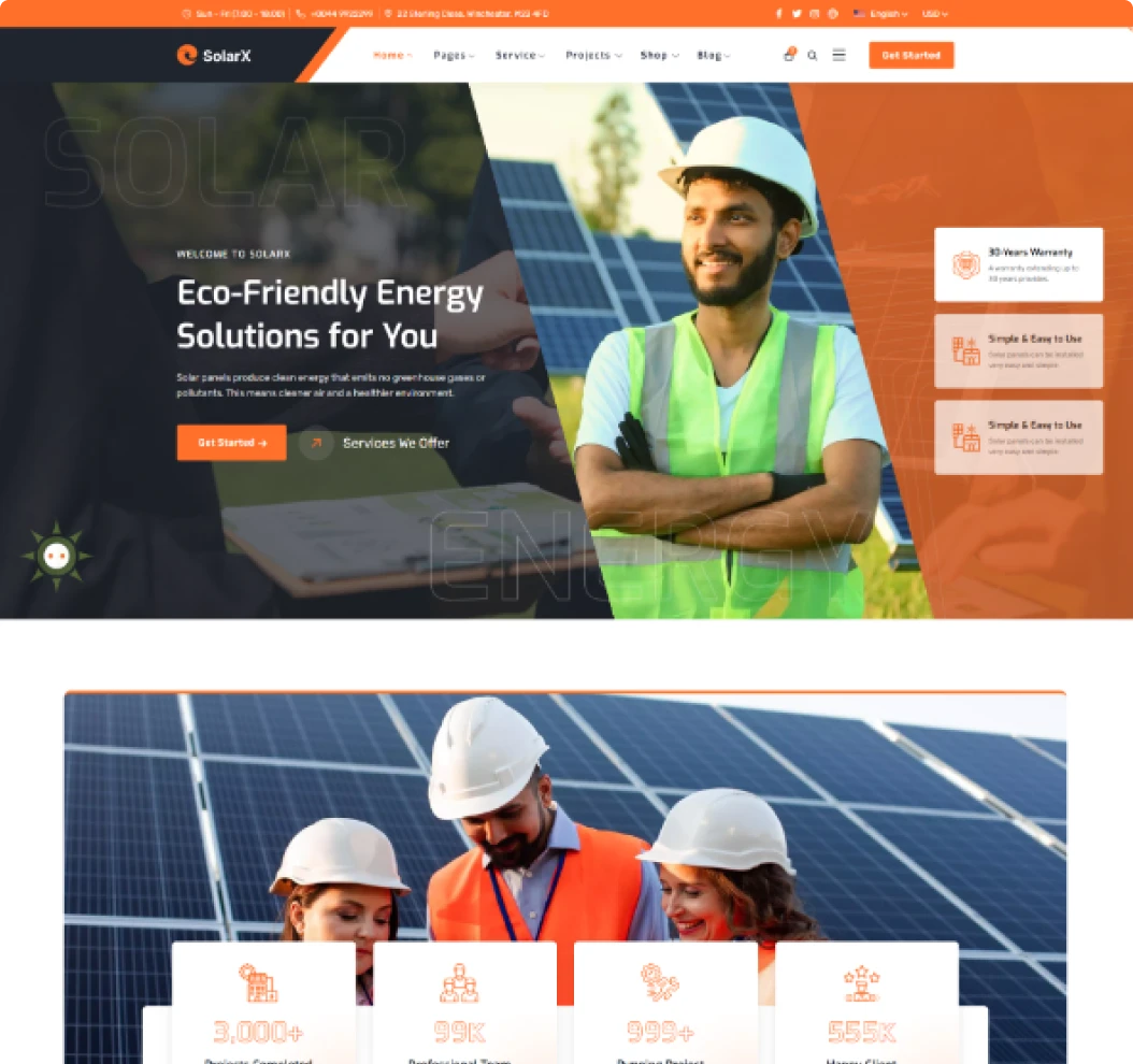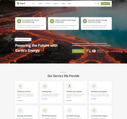 SolarX is the ultimate solar website template packed with unlimited features and all the essential sections you need to create a professional, modern, and engaging solar energy website.