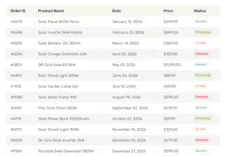 Manage your solar or energy business with ease using the built-in SolarX Dashboard — packed with analytics, charts, and smart UI components for efficient project control.